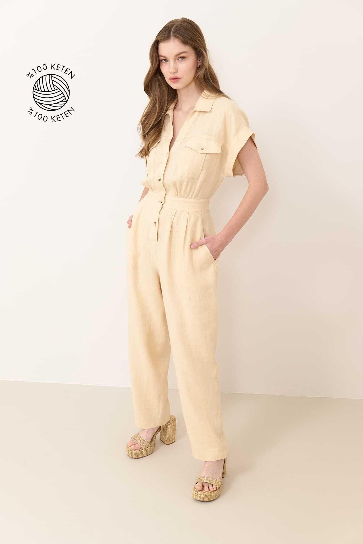 Cepli Kısa Kol Tulum Naturel