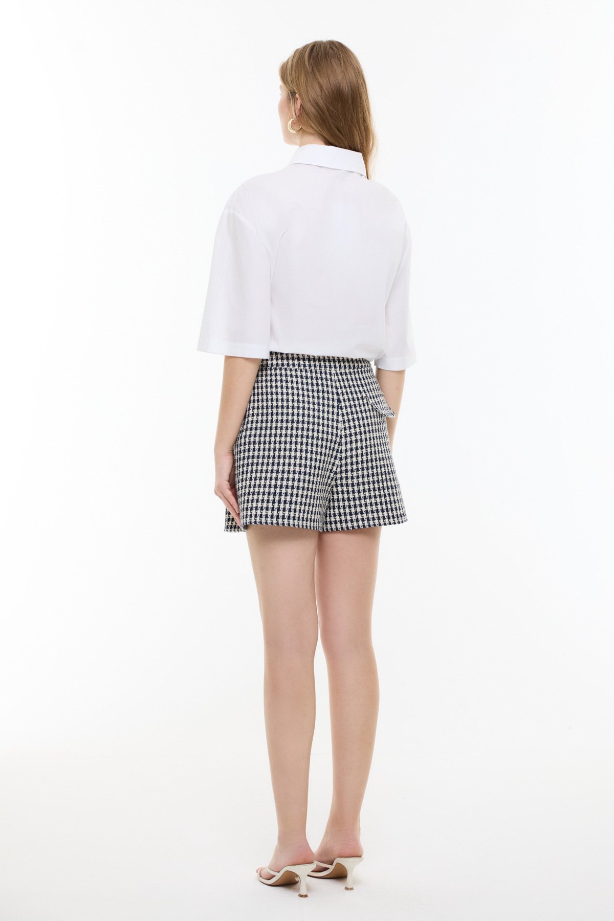 Kazayağı Desenli Şort Lacivert - Beyaz