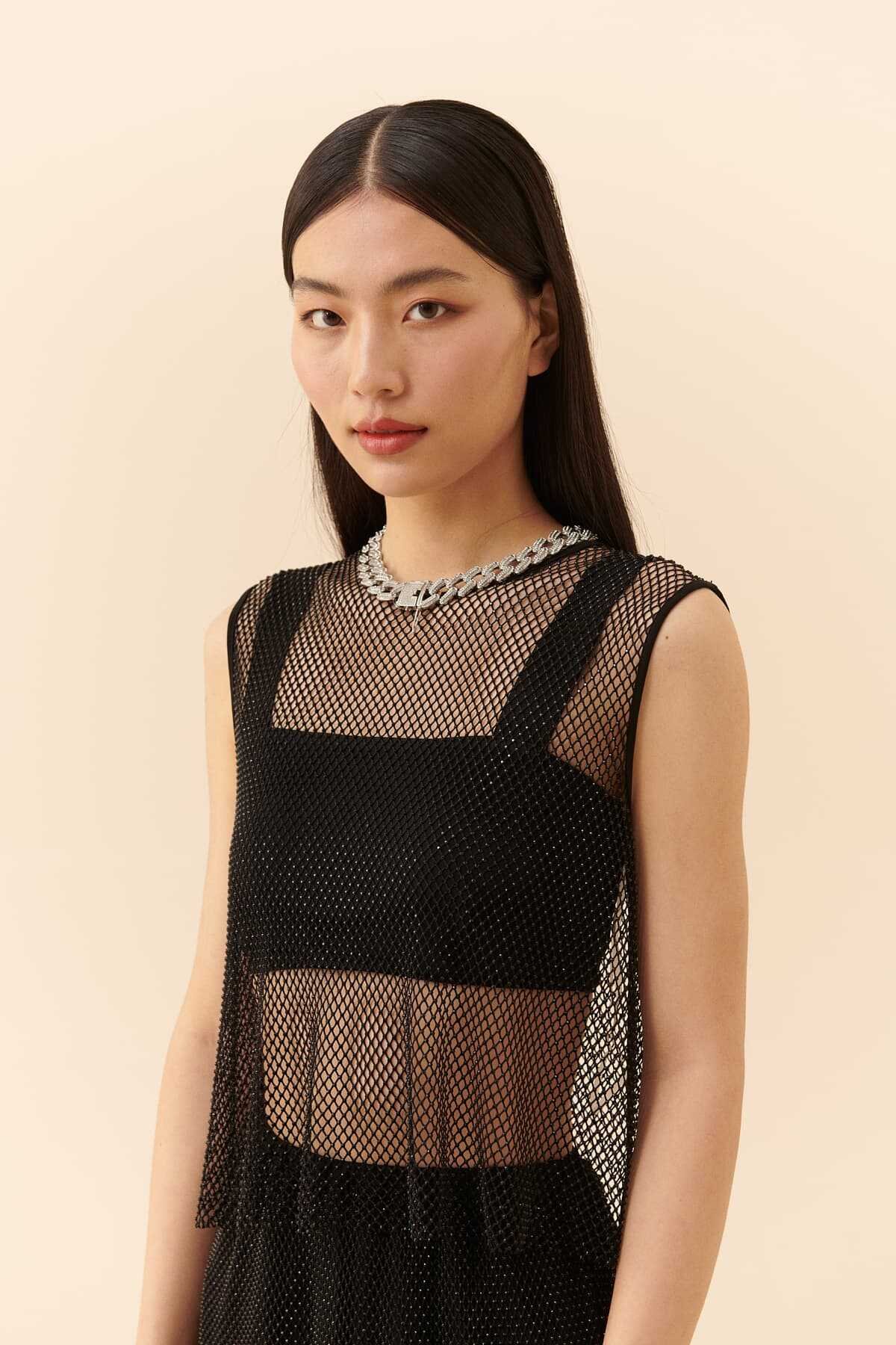 Tek Omuzu Pili Detaylı Kolsuz Bluzan Siyah