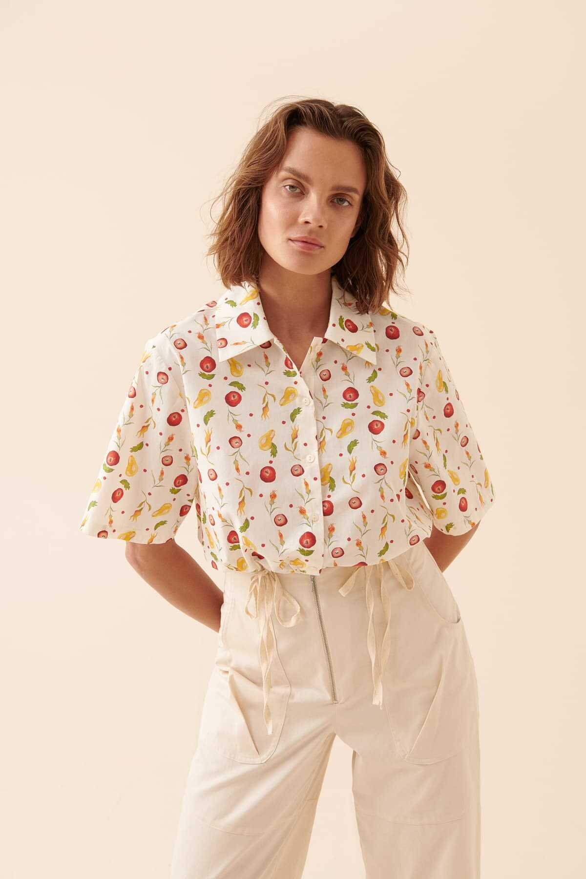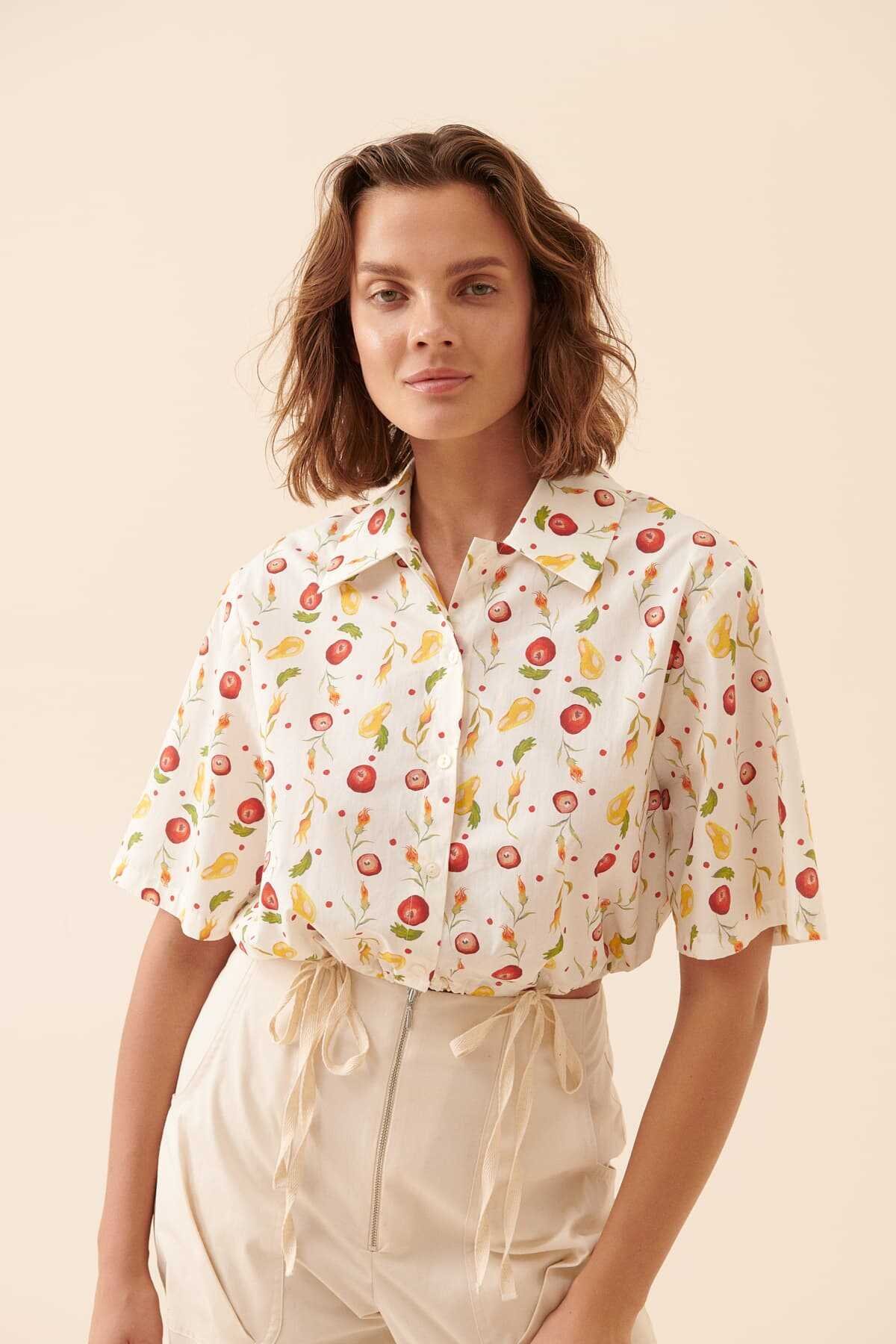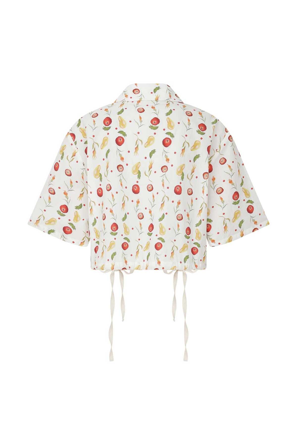 Pili Detaylı Beli Kemerli Gömlek Beyaz