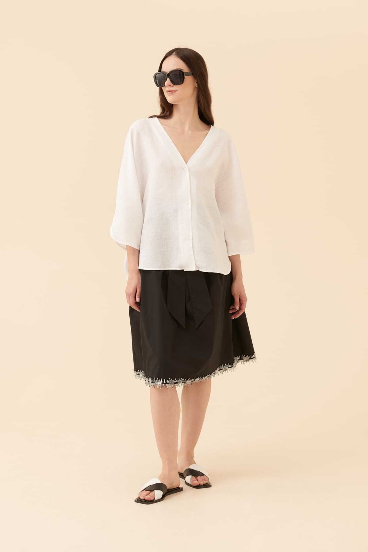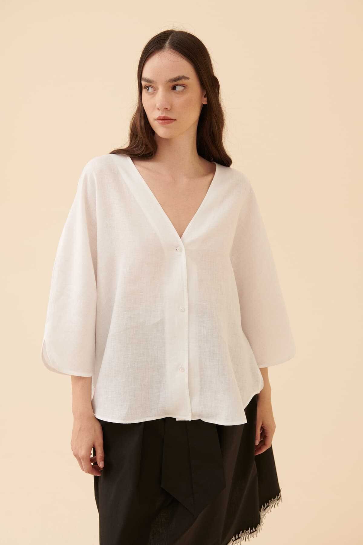 KUMAŞ İÇERİĞİ: Ana Kumaş: %100 Keten , YIKAMA TALİMATI: Makine Yıkama , Soğuk (30C veya 65F ile 85F) Tersten Yıkama Yapınız ÜTÜLEME TALİMATI: Düşük Isıda Ütüleme 110C Tersten Ütüleyiniz KURUTMA TALİMATI: Sererek Kurutunuz ALT ÜRÜN GRUBU: V yaka MODEL ÖLÇÜLERİ: