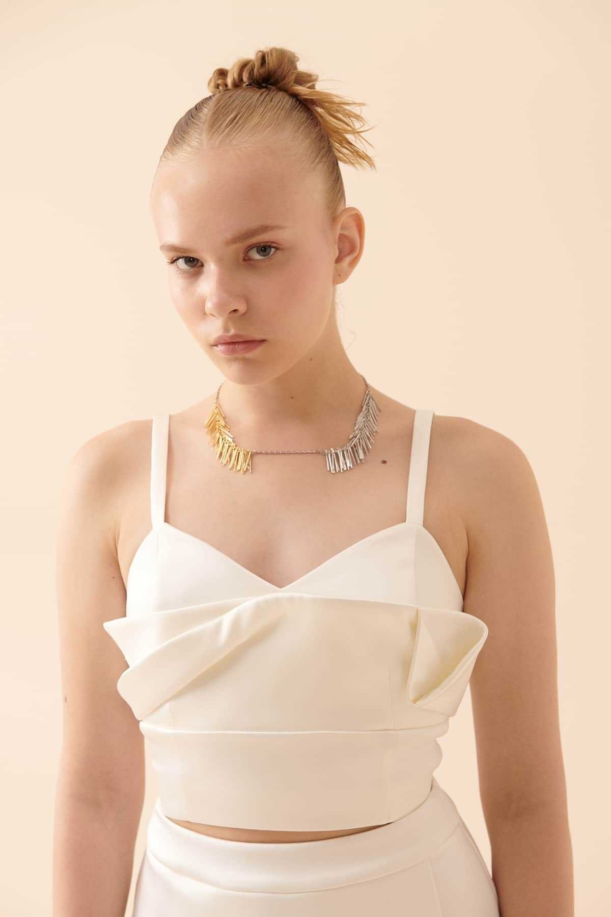 Zincir ve Boncuk Detaylı Kolye Standart Renk