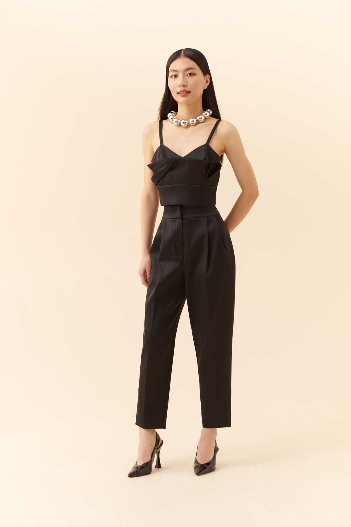 Aplike Çiçek Detayı İnce Askılı Saten Büstiyer Siyah