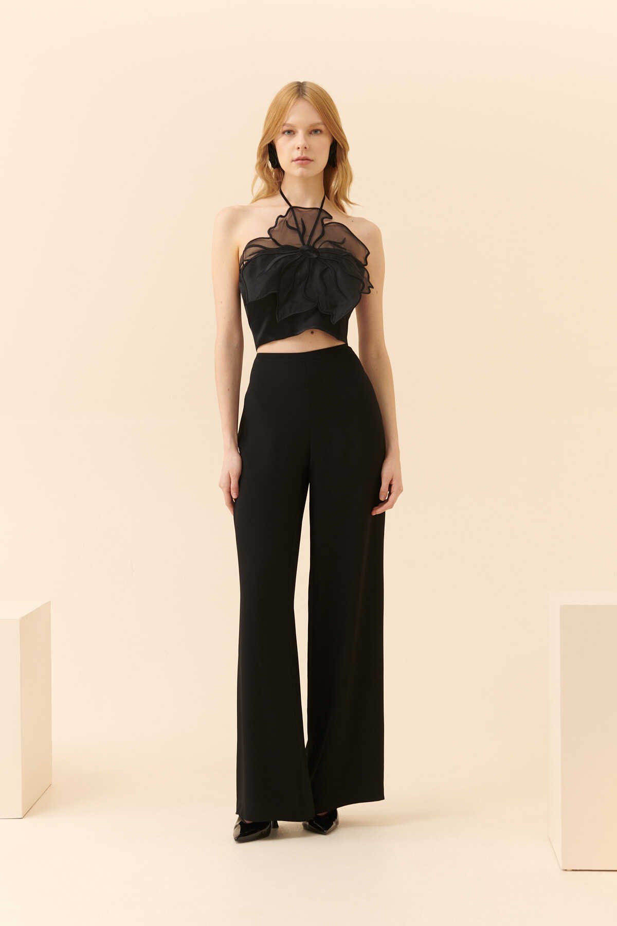 Çıkarılabilir Çiçek Broşlu Payet Büstiyer Siyah