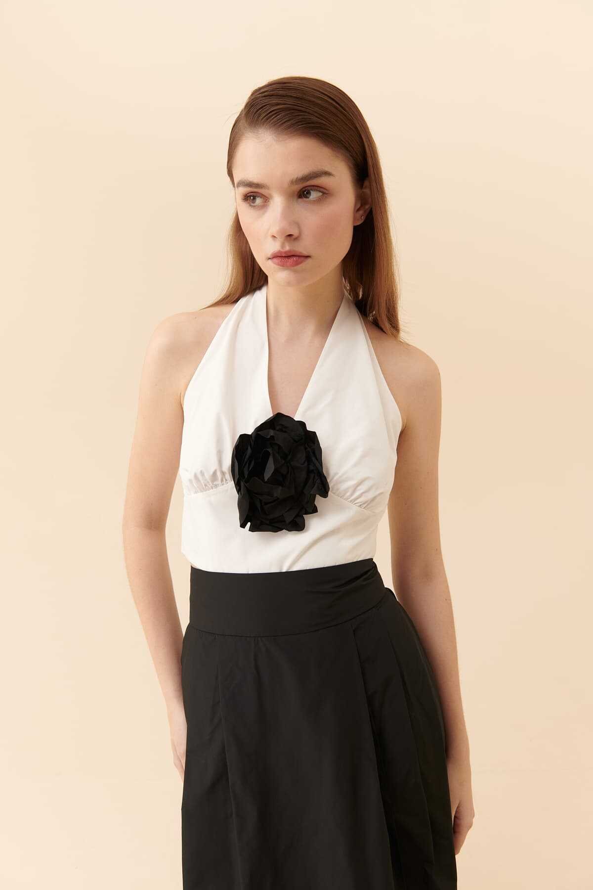 Çıkarılabilir Çiçek Broşlu Payet Büstiyer Siyah