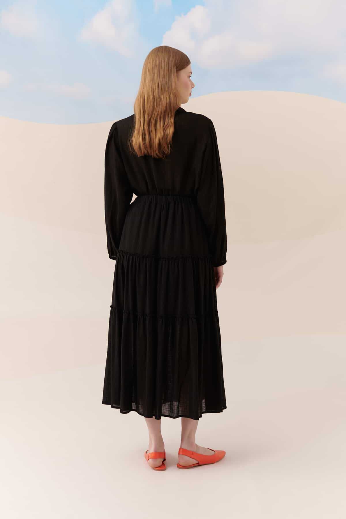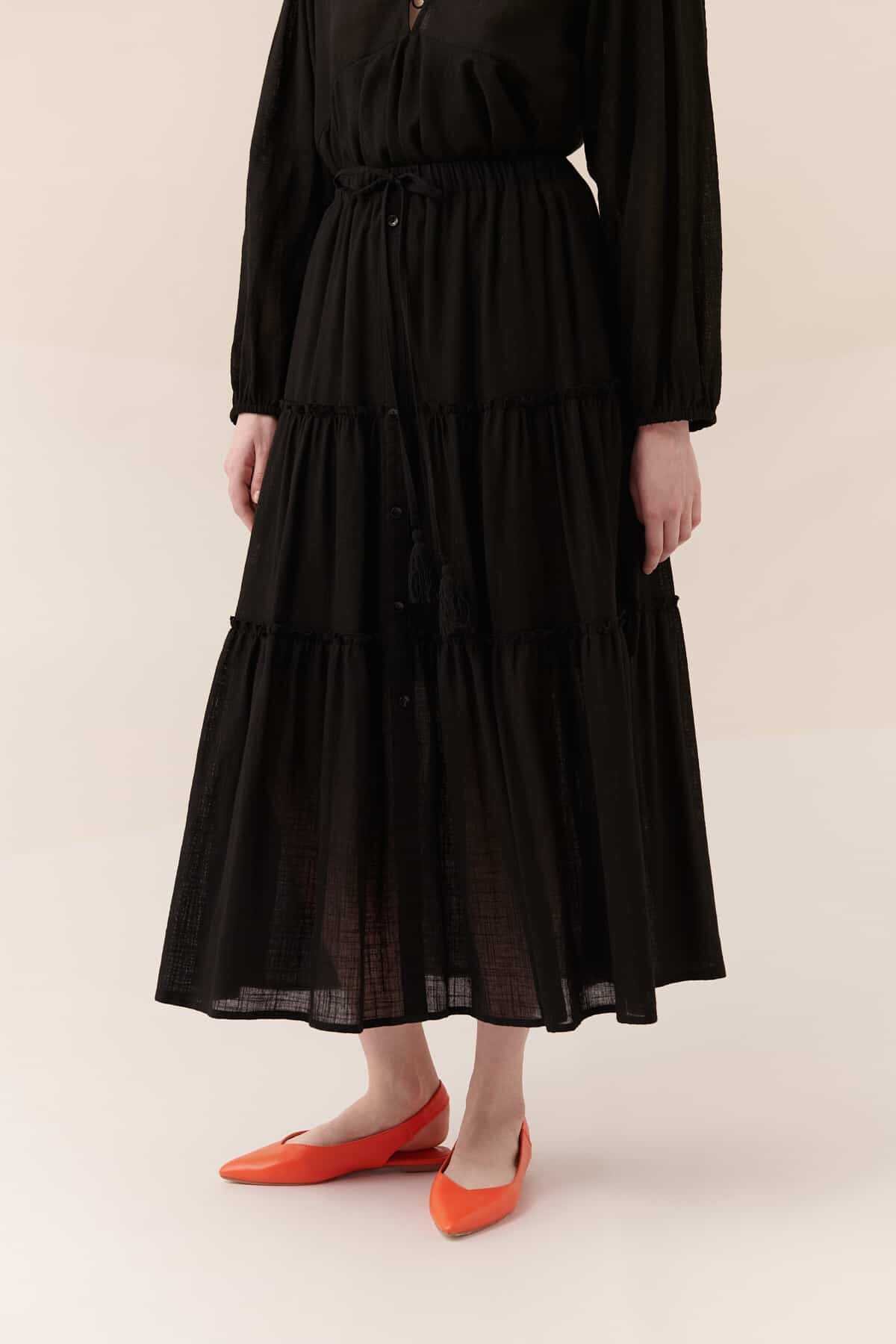 Önü ve Arkası Derin Yırtmaçlı Maksi Boy Etek Siyah