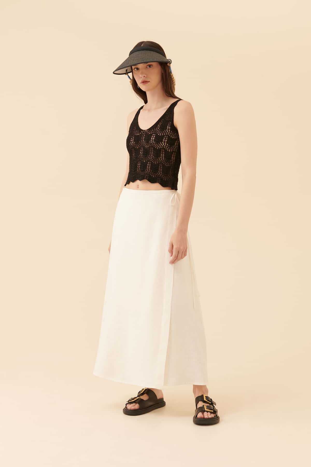 Otriş Aksesuarlı Midi Boy Yırtmaçlı Etek Siyah