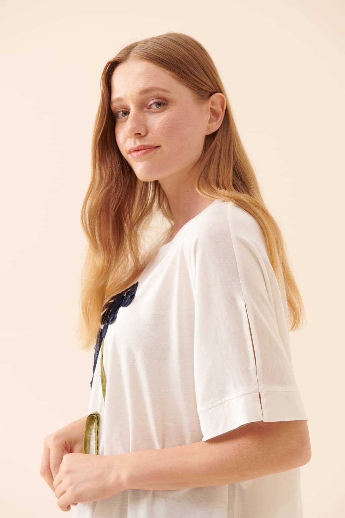 KUMAŞ İÇERİĞİ: Ana Kumaş: %50 Pamuk ,Garni 1: %100 Polyester ,Ana Kumaş: %50 Lyocell , YIKAMA TALİMATI: Makine Yıkama , Soğuk (30C veya 65F ile 85F) Tersten Yıkama Yapınız ÜTÜLEME TALİMATI: Düşük Isıda Ütüleme 110C Tersten Ütüleyiniz KURUTMA TALİMATI: Sererek Kurutunuz ALT ÜRÜN GRUBU: Aplikeli MODEL ÖLÇÜLERİ: