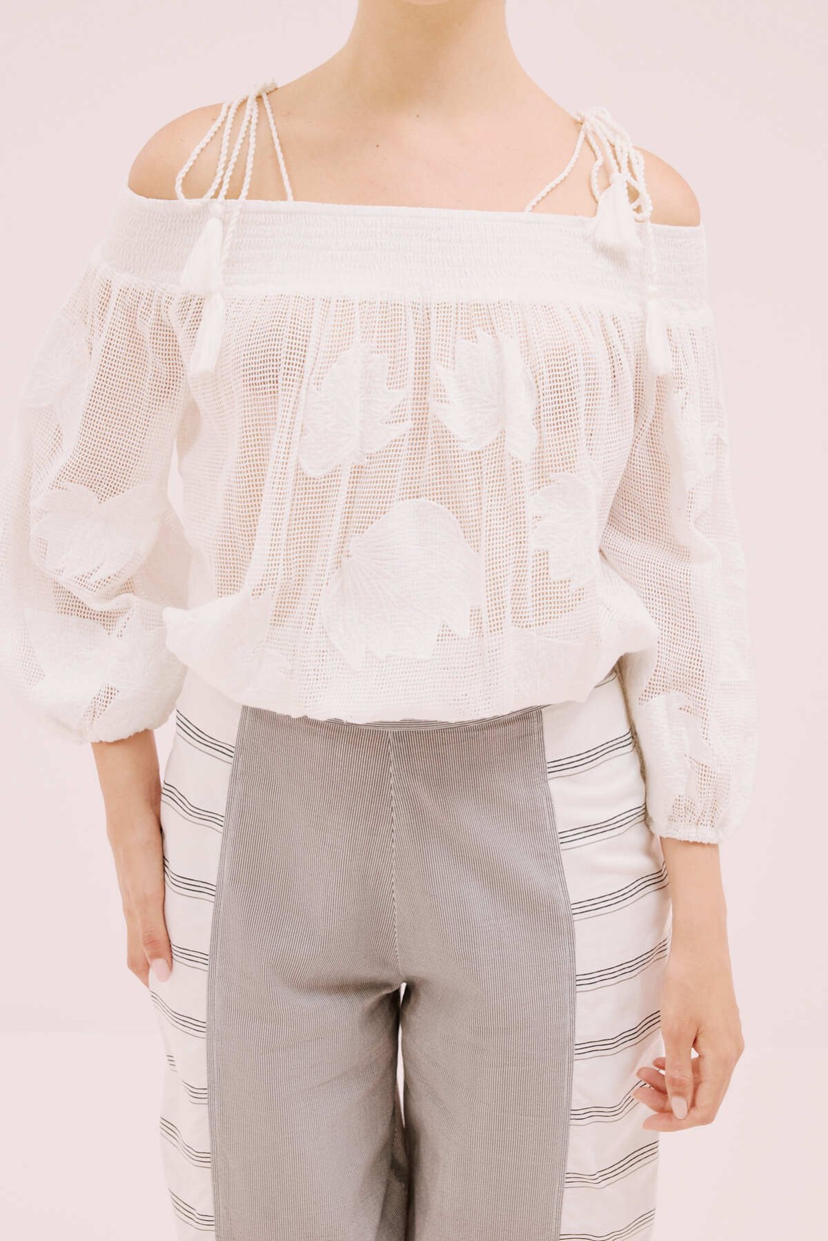 Otriş Kol Detaylı Dokuma Bluz Siyah