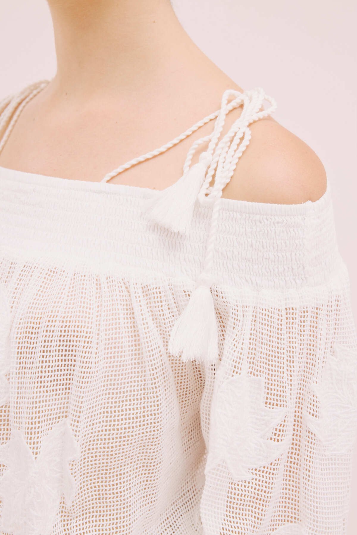 Yakası Fular Detaylı Kolsuz Poplin Bluz Beyaz