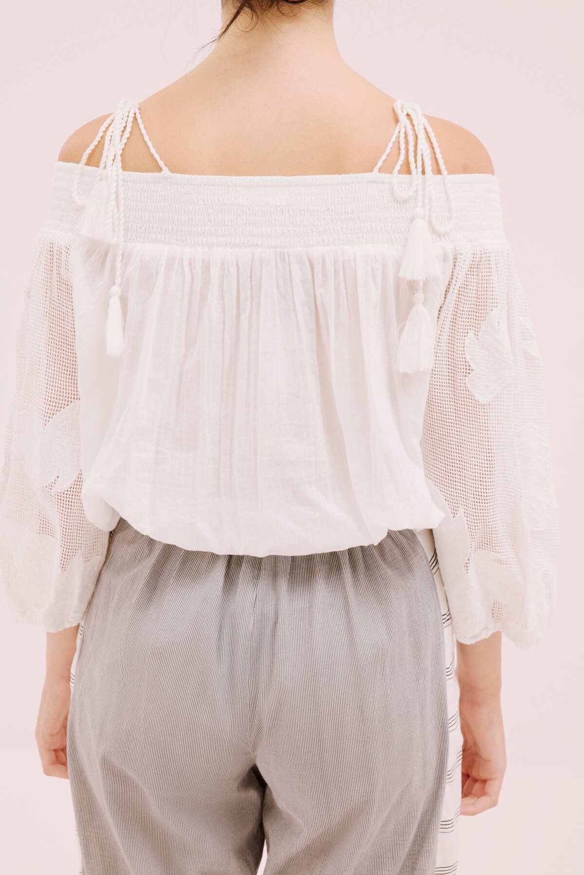 Fırfır Yaka Arkası Fular Bağlamalı Bluz Standart Renk