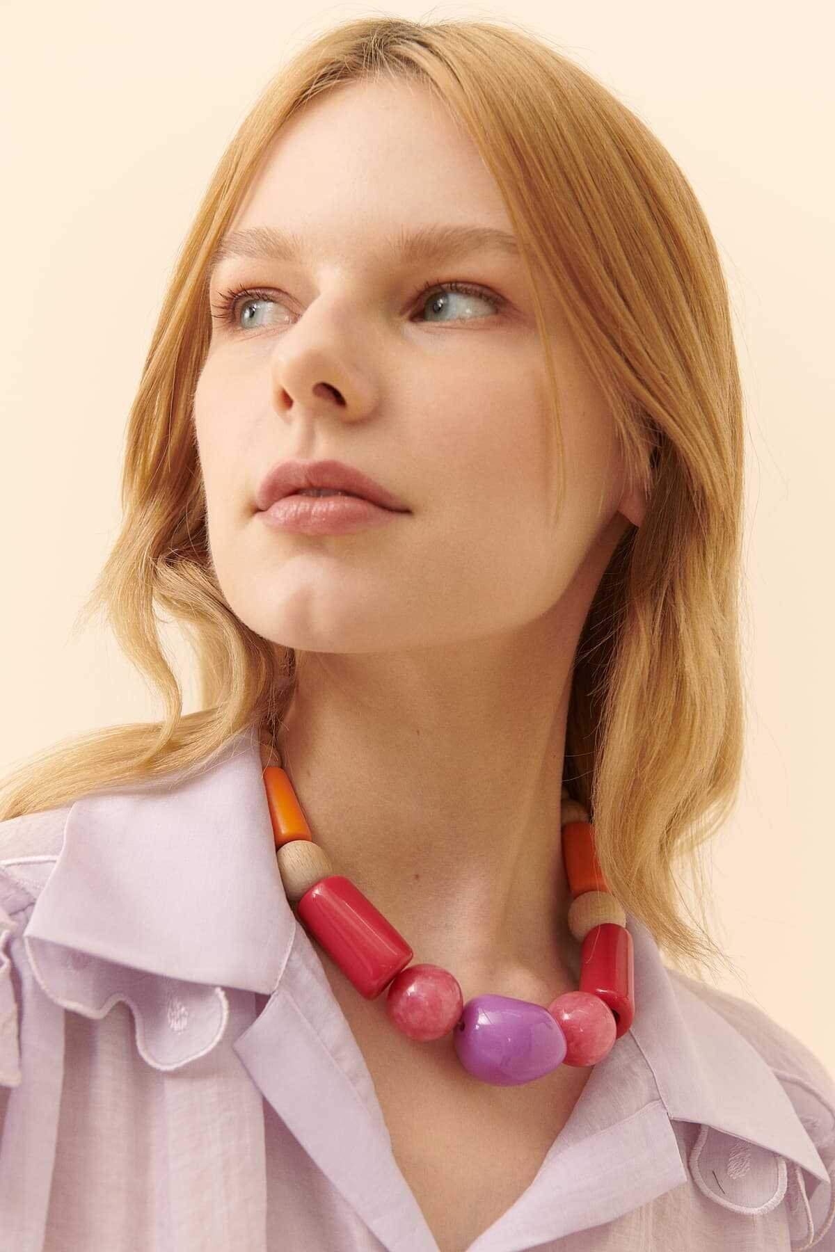 İnci Detaylı Uzun Zincir Kolye Pudra