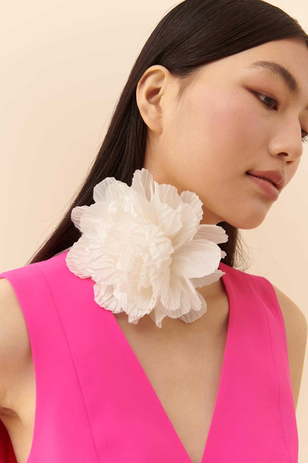 Papatya Motifli Denim Broş Lacivert