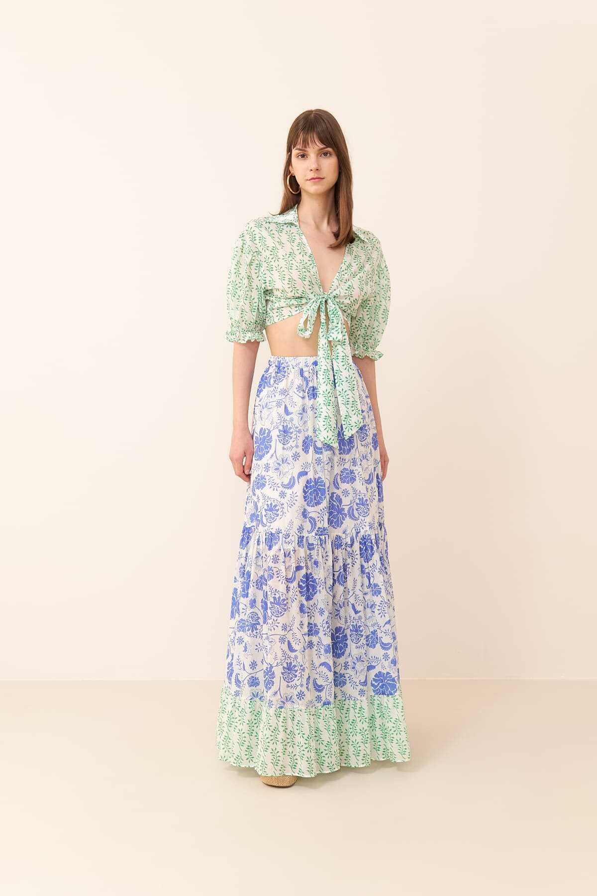 Kruvaze Belde Bağlamalı Etek Naturel