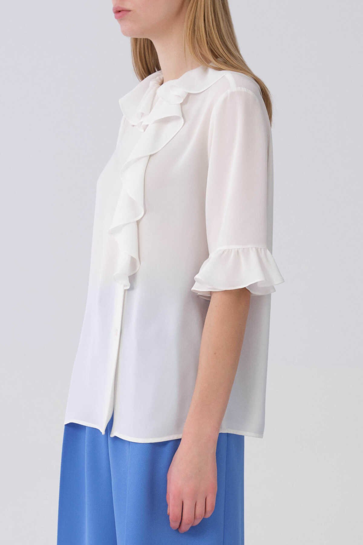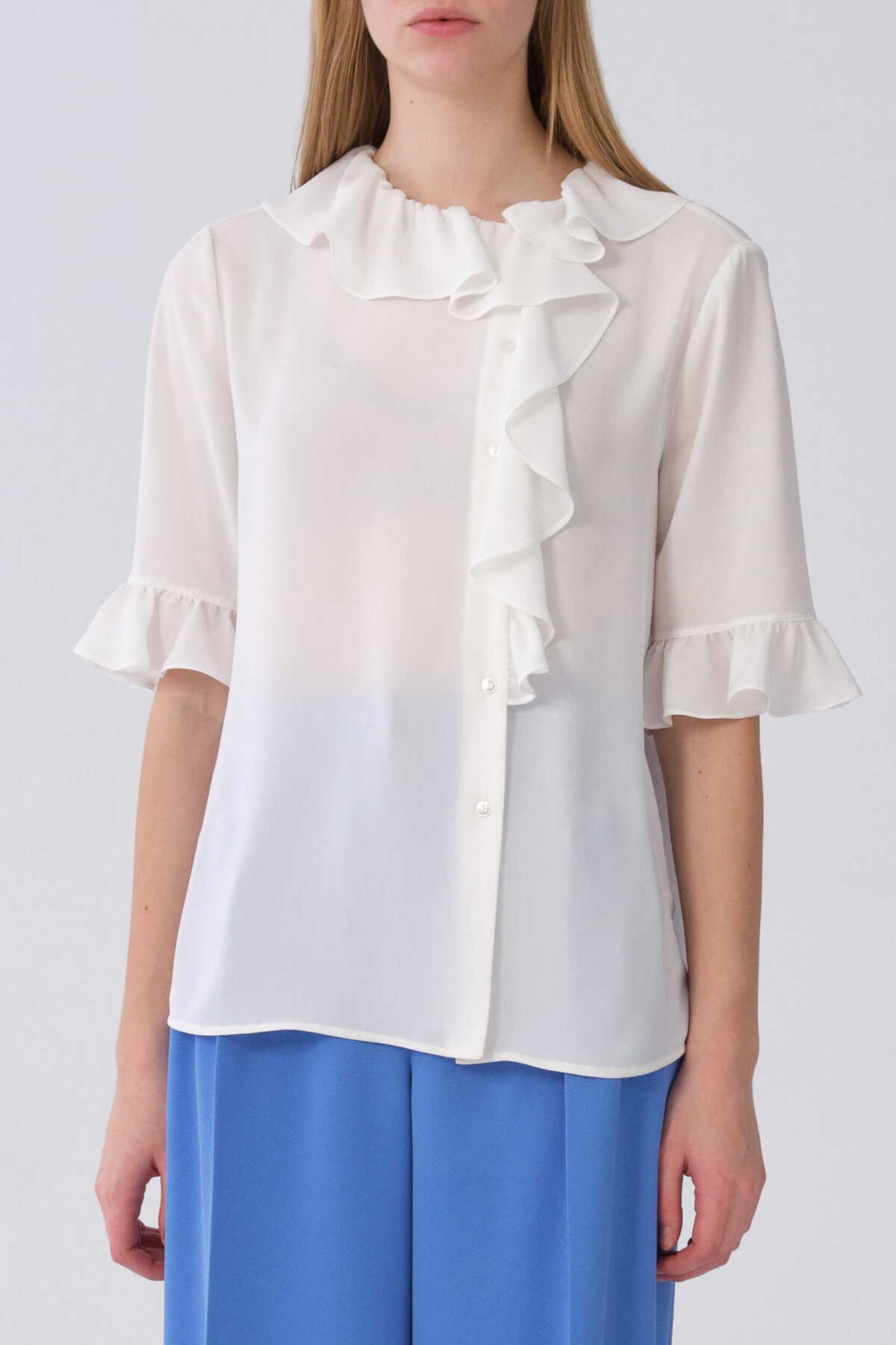 Bisiklet Yaka Pelerin Kol Detaylı Bluz Ekru