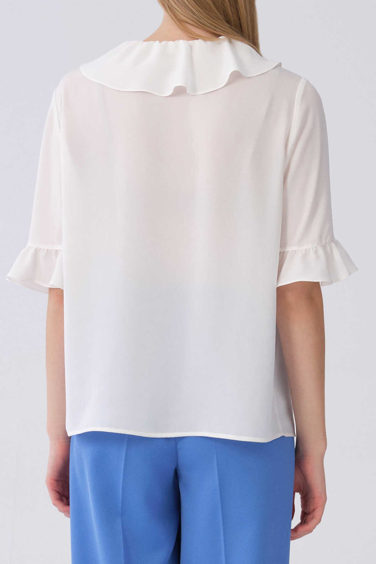 Fırfır Yaka Arkası Fular Bağlamalı Bluz Standart Renk