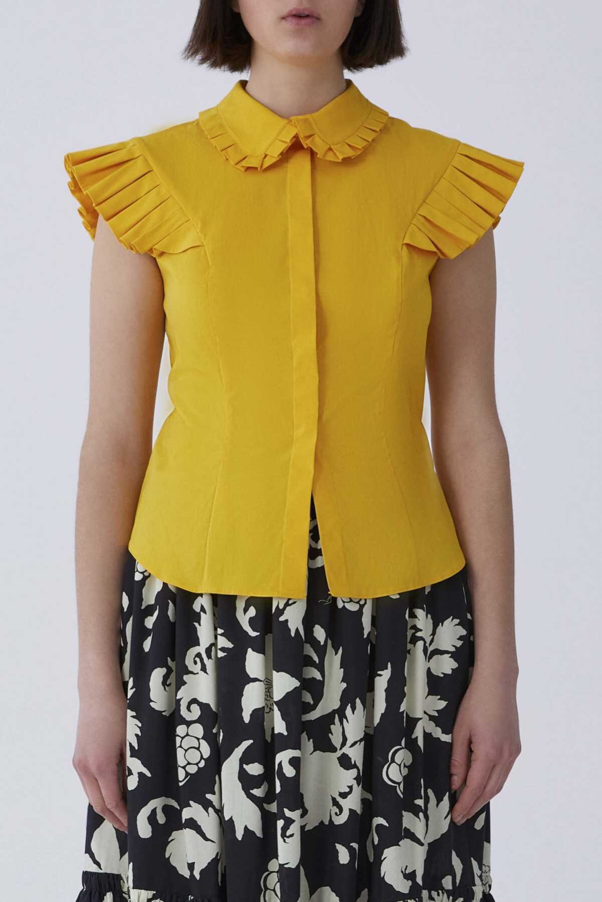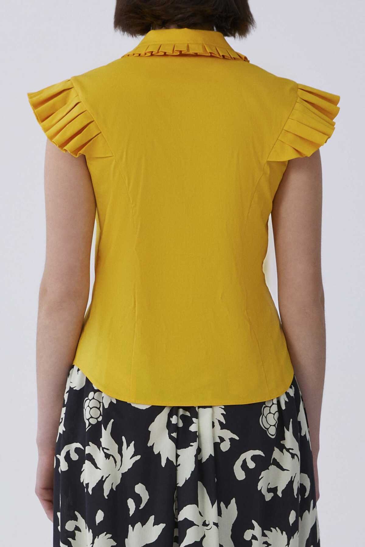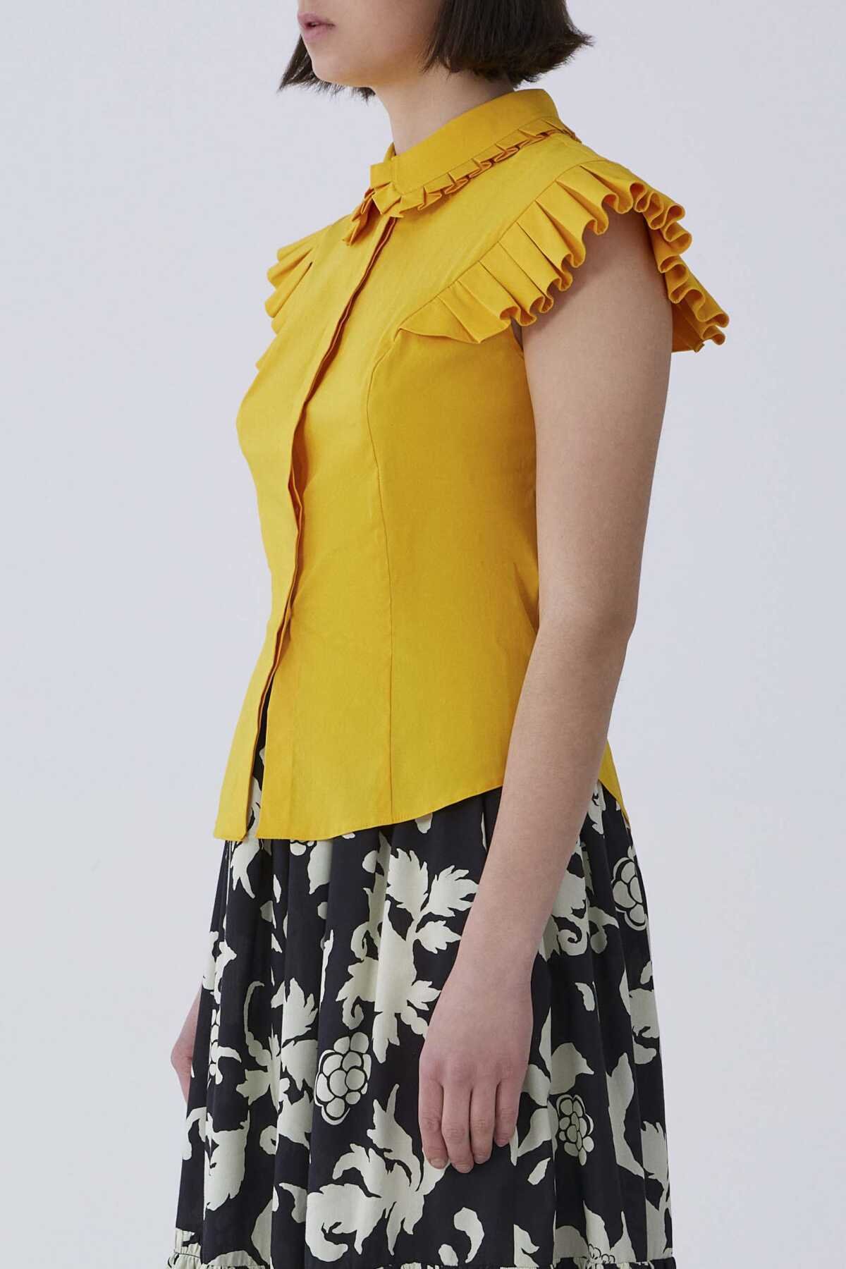 Yaka Ve Kol Fırfırlı Gömlek Sarı