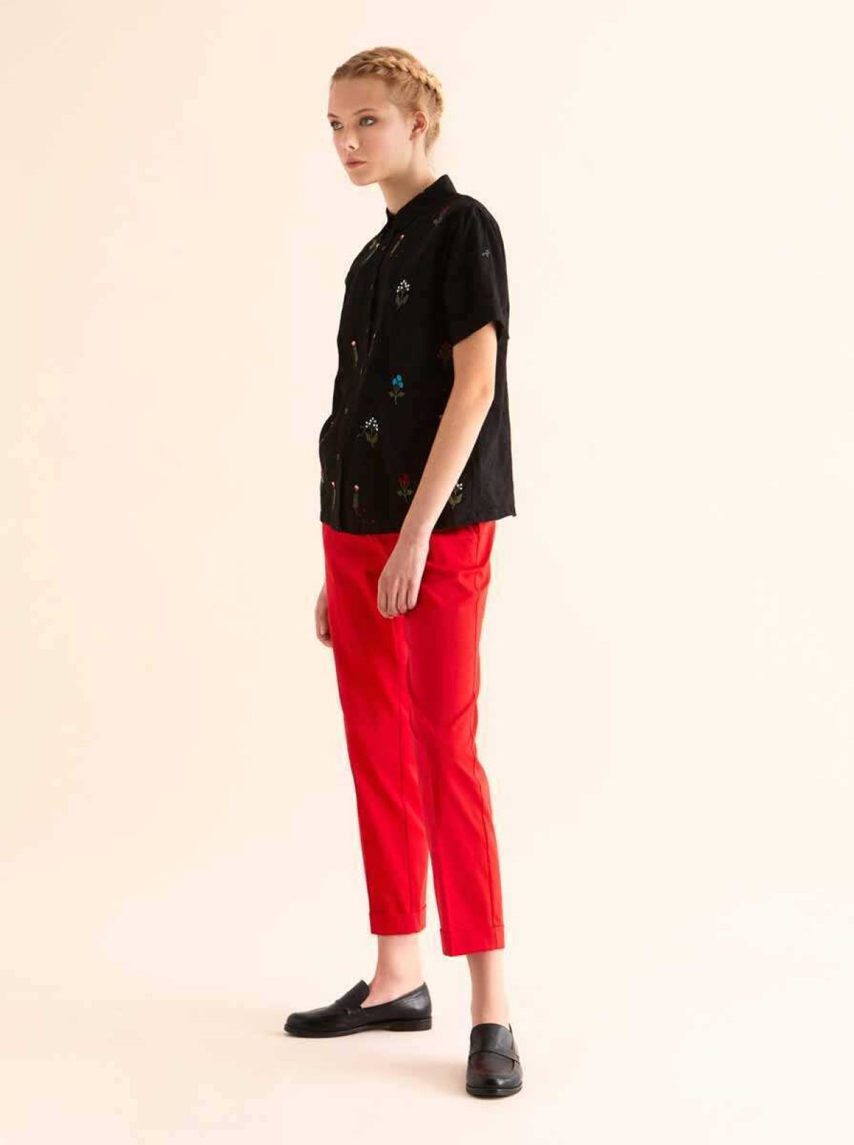 Yarım Kollu Desenli Kadın Gömlek Siyah