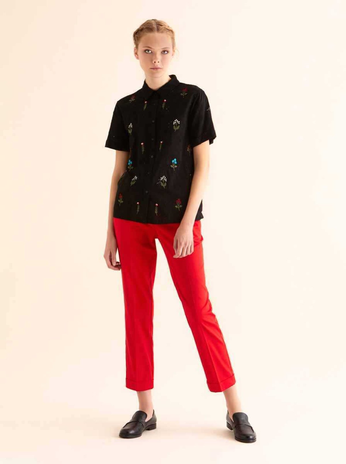 Fırfır Yaka Uzun Kollu Gömlek Ekru