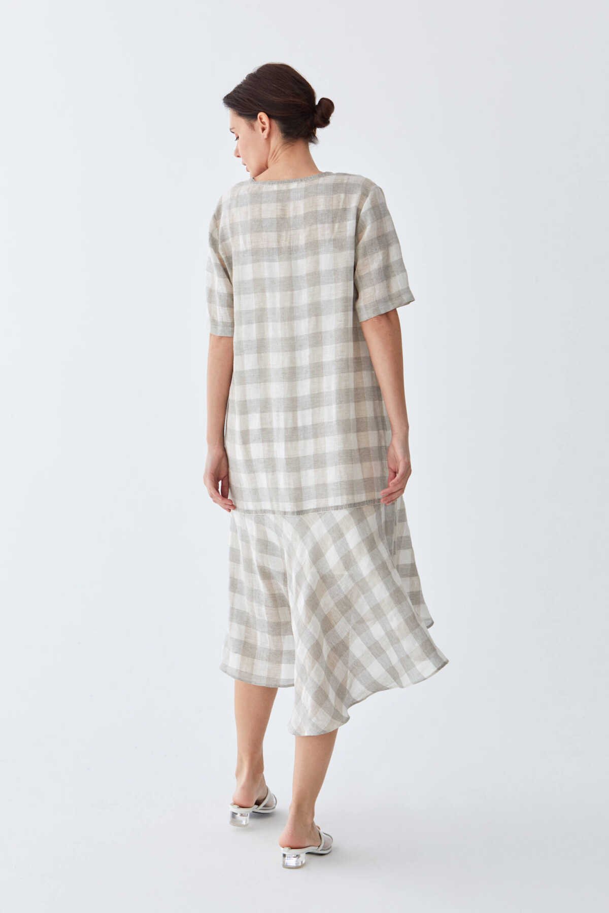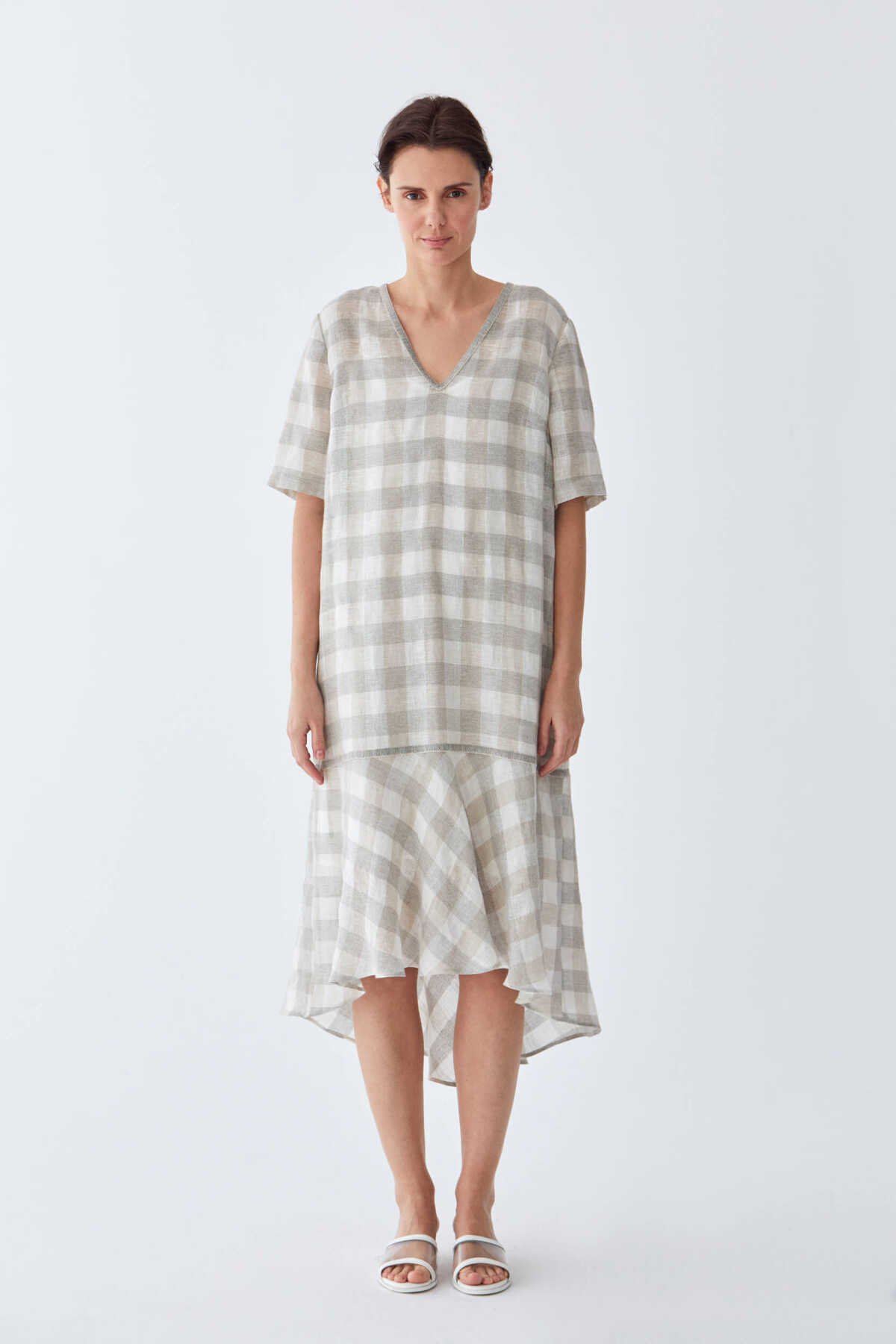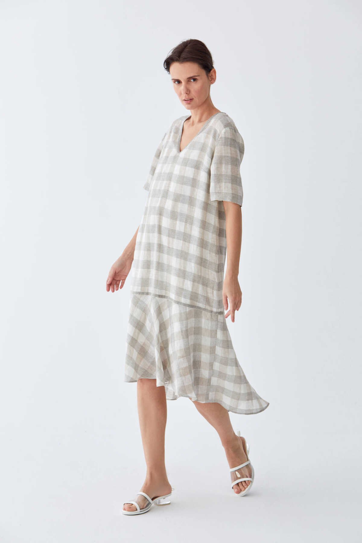 Yarım Kollu Kareli Günlük Elbise Standart Renk