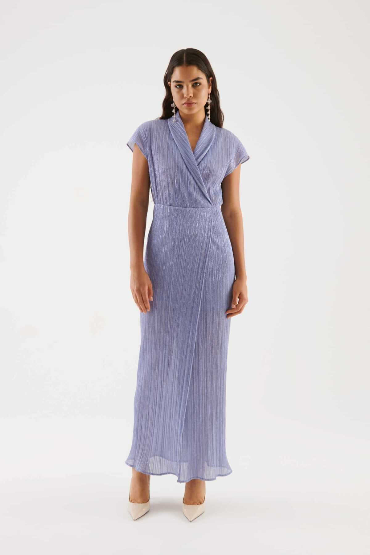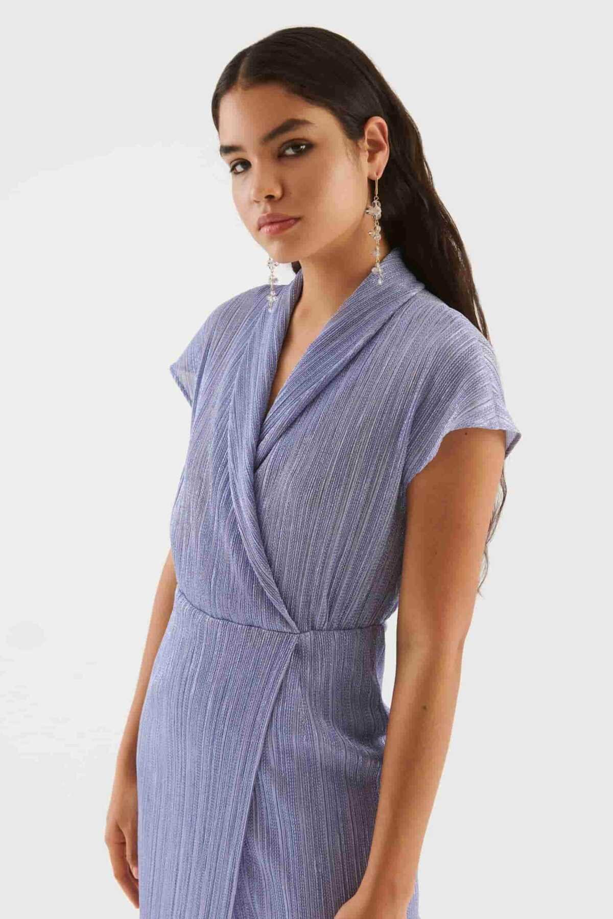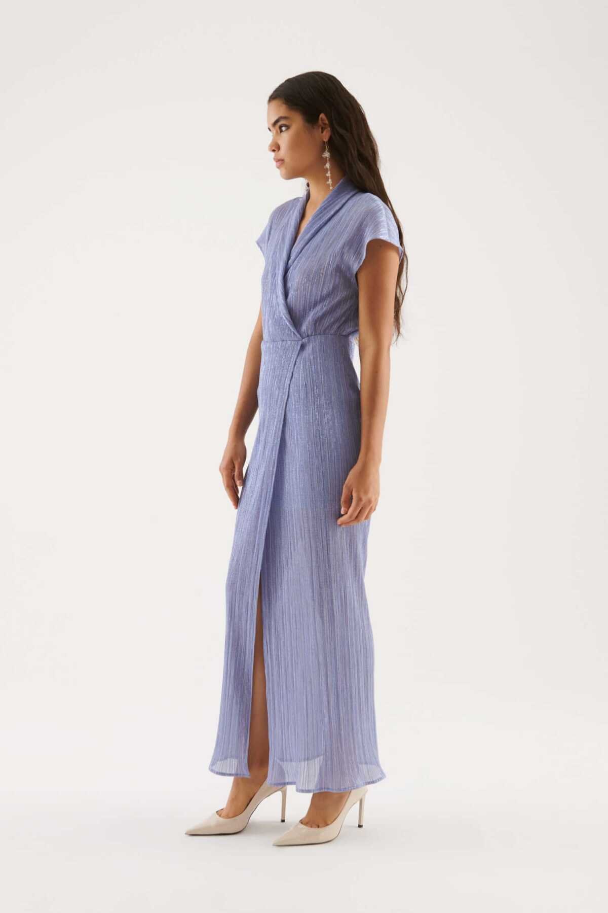Yırtmaç Detaylı Abiye Elbise Mavi