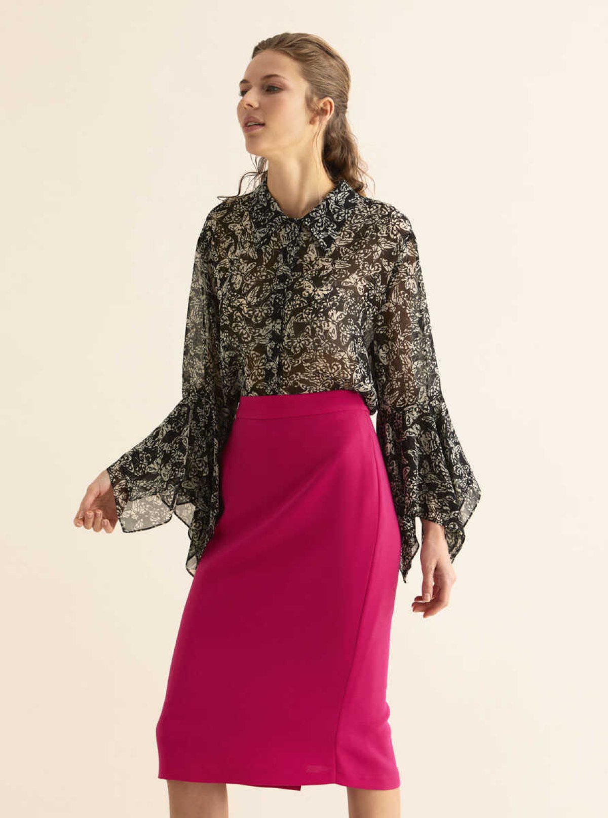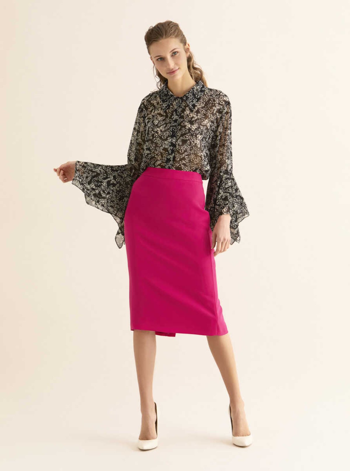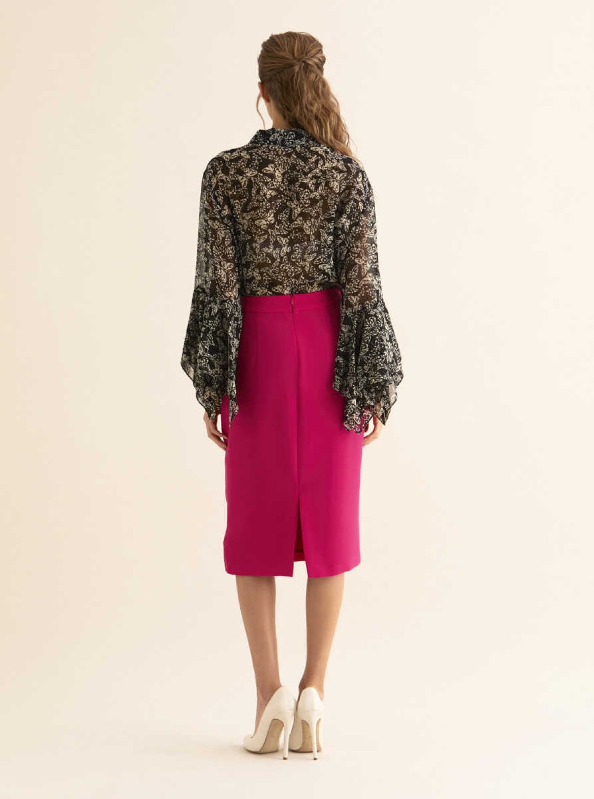 Yırtmaç Detaylı Kalem Etek Fuşya