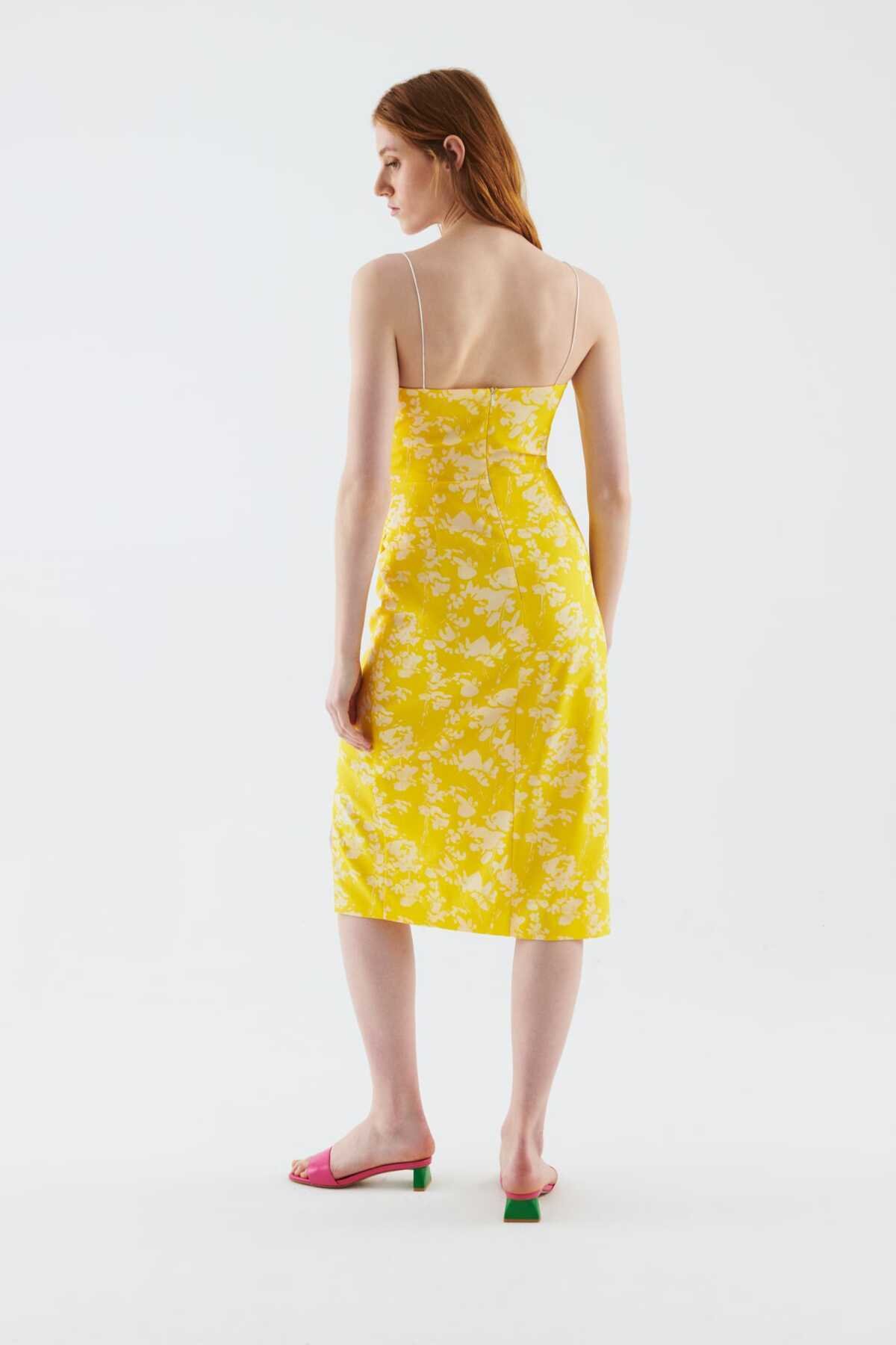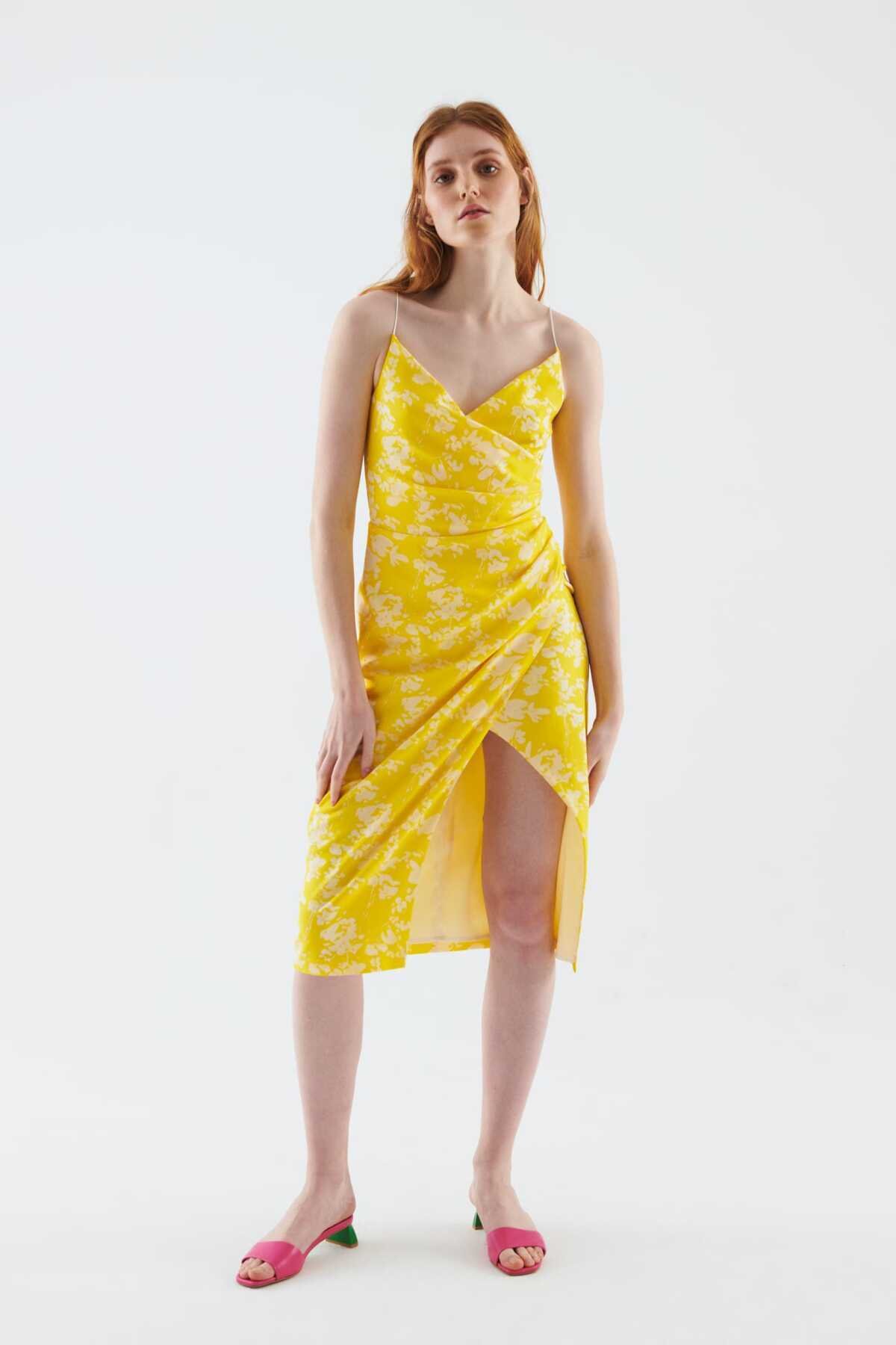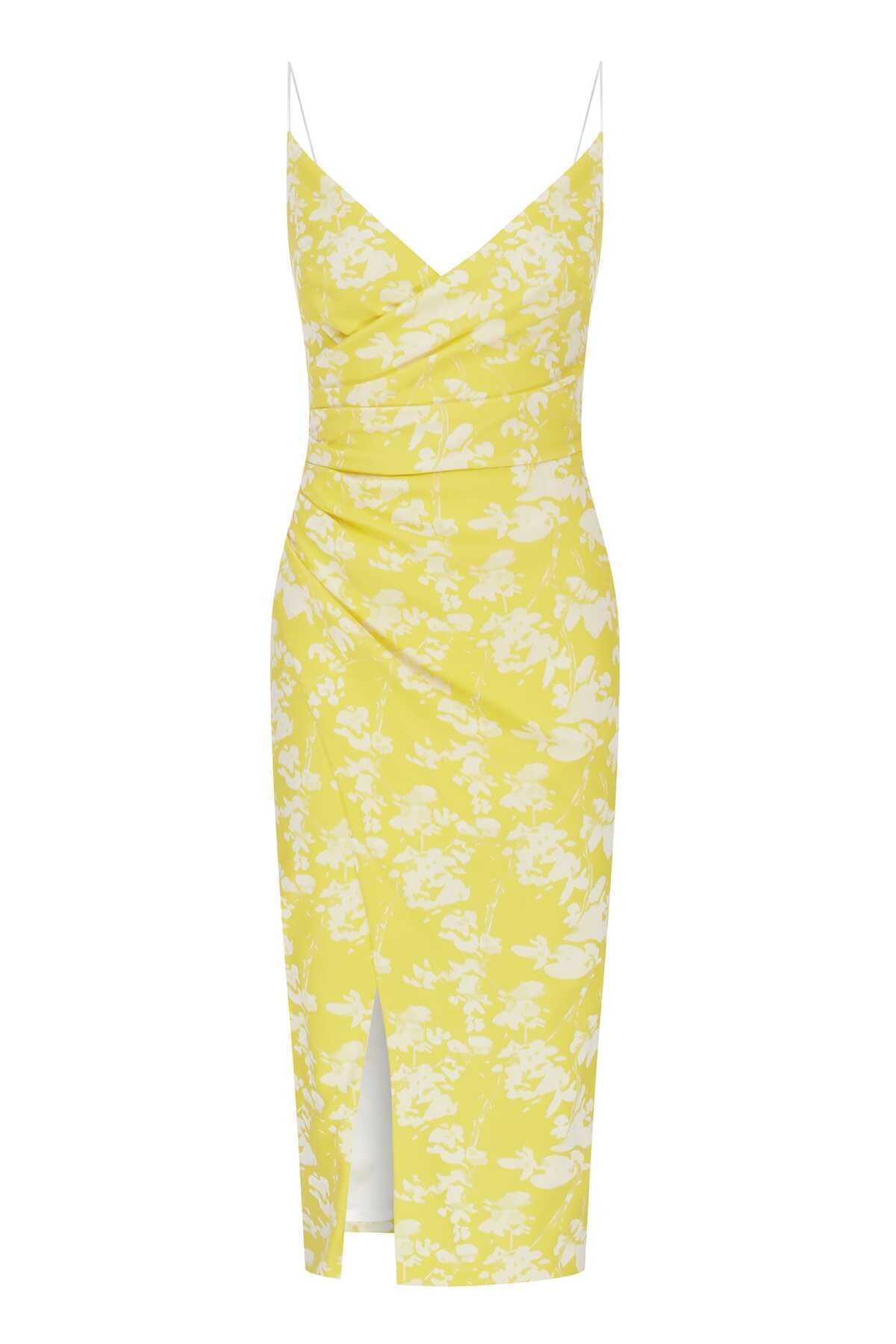 Yırtmaçlı Desenli Abiye Elbise Standart Renk