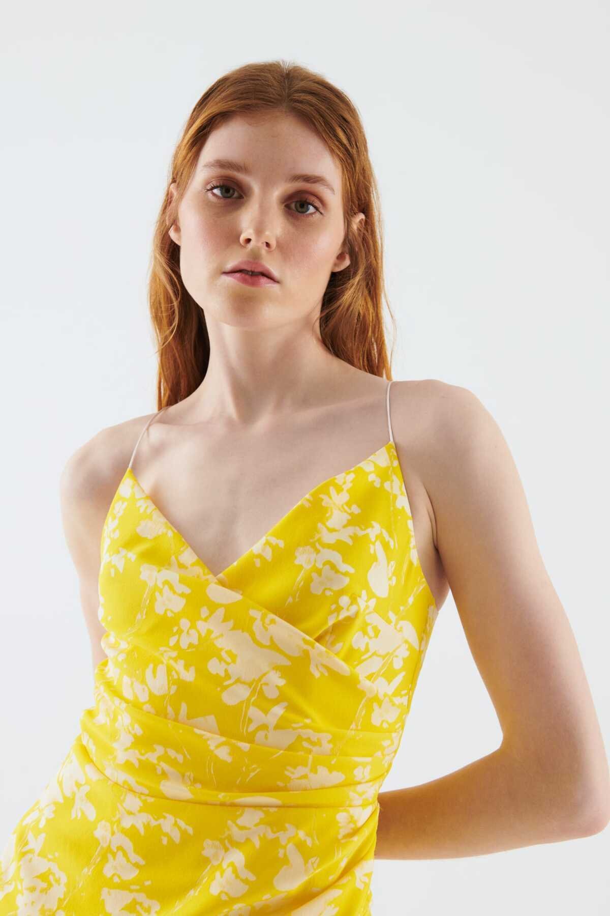 İnce Askılı Brode Detaylı Tafta Elbise Siyah