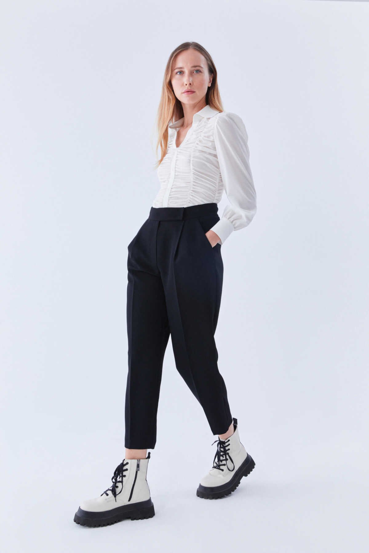 Yüksek Bel Kısa Paça Pantolon Siyah