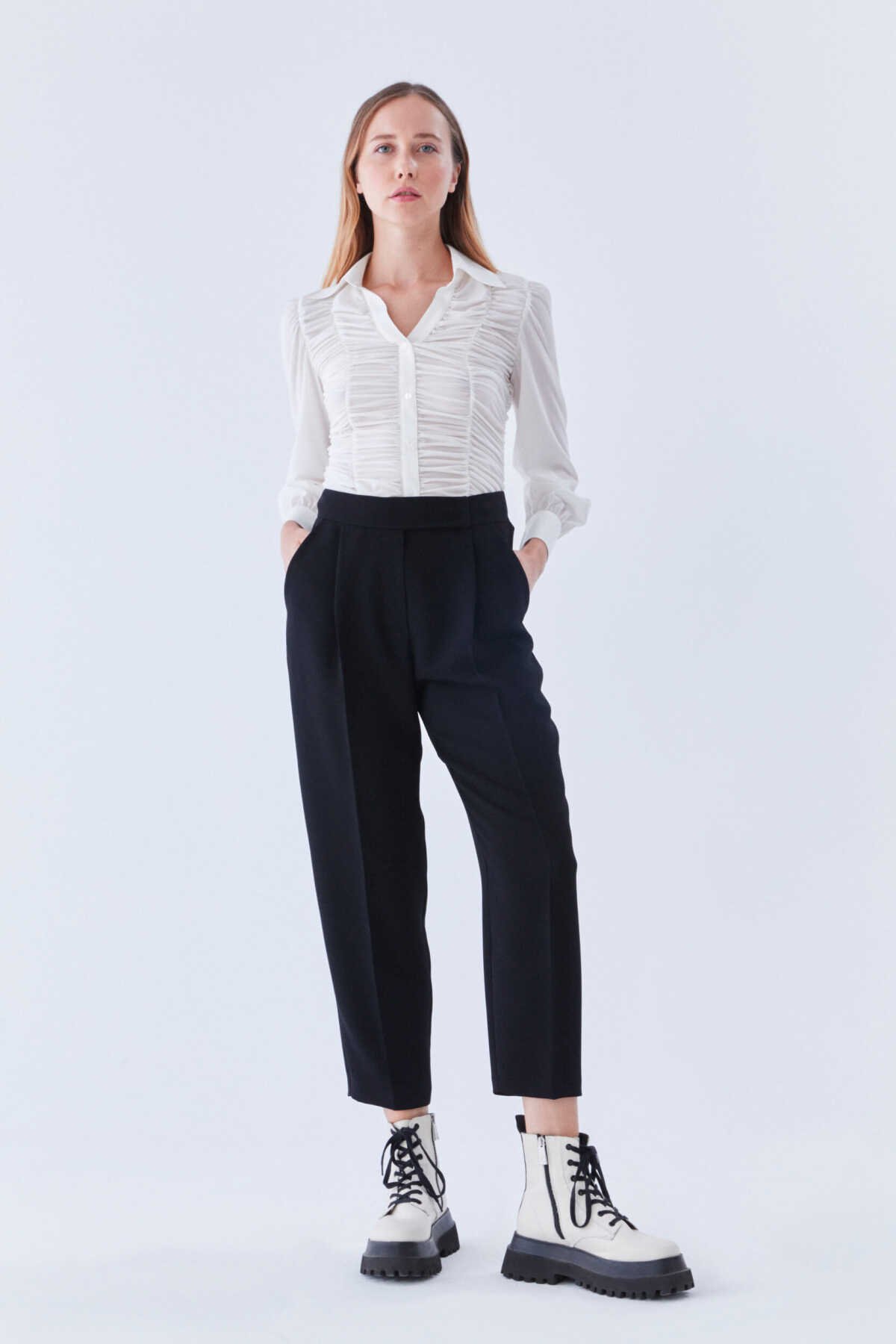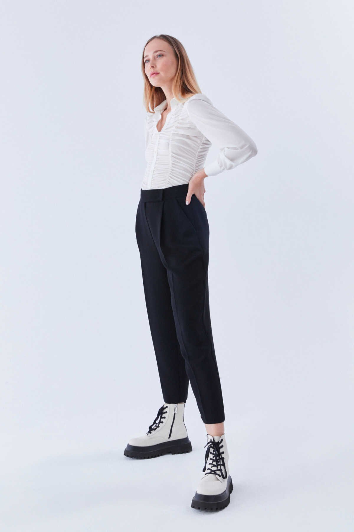 Çift Pileli Yüksek Bel Havuç Pantolon Siyah