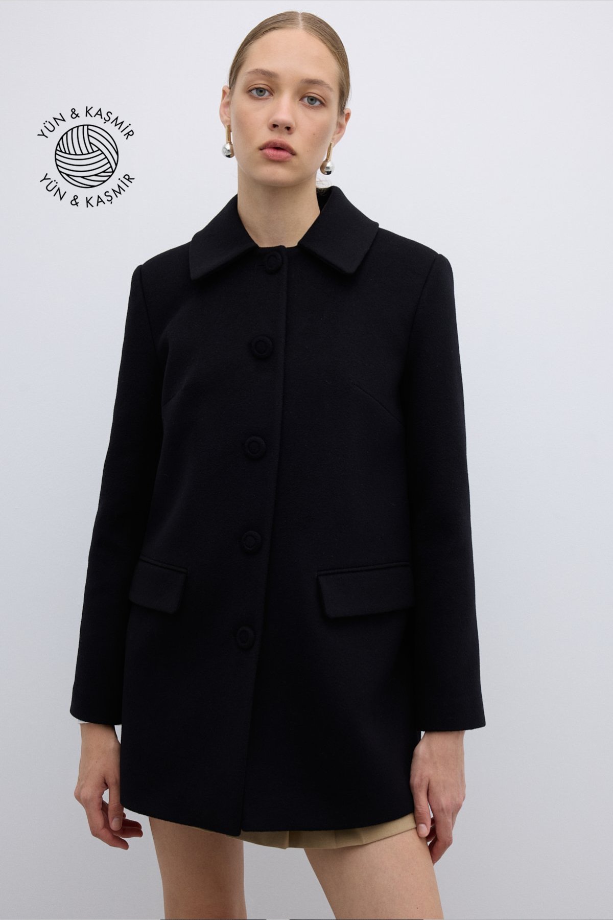 Yün ve Kaşmir Karışımlı Kaban Siyah - 1